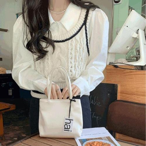 허니제이 / 샤큰 빅카라 니트 셔츠 블라우스(3color)