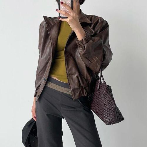 가죽 재킷 여성 자켓 빈티지 PU 코트 봄 캐주얼 학생 admr1