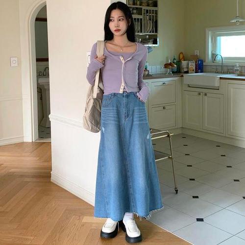 [다잇템]여자 백밴딩 FW 진 롱 SS 빈티지 스커트