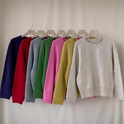 [미라클세븐]여성 나그랑 스타일 데일리 빨강 스웨터 라운드 니트
