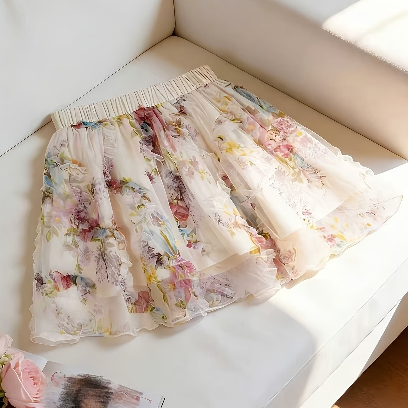 TEMU 새로운 여름 여성용 프렌치 스타일 우아하고 로맨틱한 프린트 A라인 이중 레이어 미니 스커트, 휴가, 데이트, 통근용, 활용도 높고 실용적