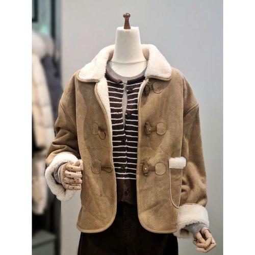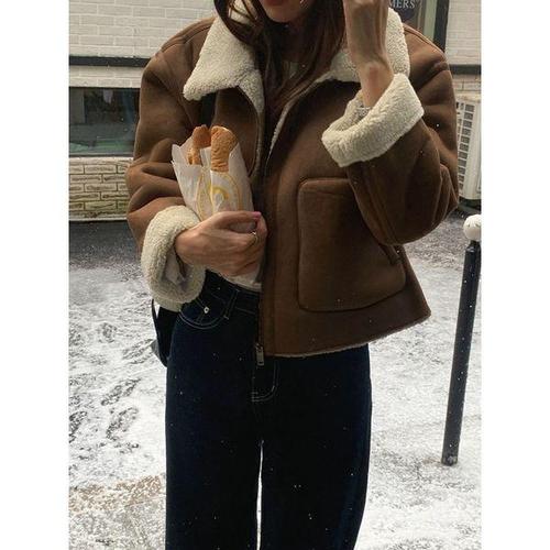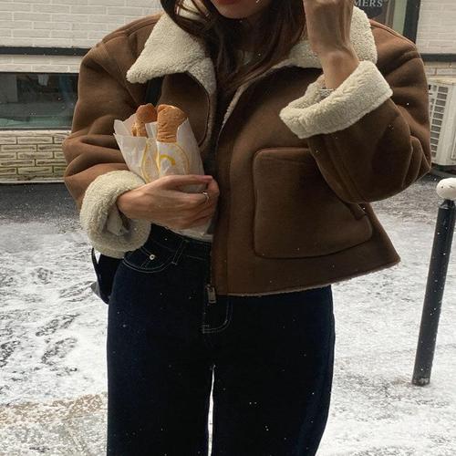 [끌레아]스웨이드 무스탕 캐쥬얼 여성 털 뽀글이 양털 기모 플리스 카라 후리스 아우터 자켓 점퍼