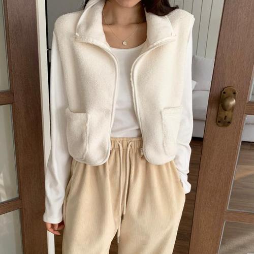 [BZHK6K93_51]심플 뽀글이 포켓 주머니 집업 조끼