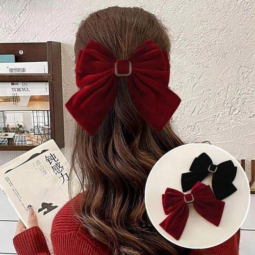 [에이치플러스몰]스퀘어 큐빅 여성 반묶음 묶음 머리 벨벳 리본 자동핀 여자 겨울 머리 삔 반묶음 리본 ..