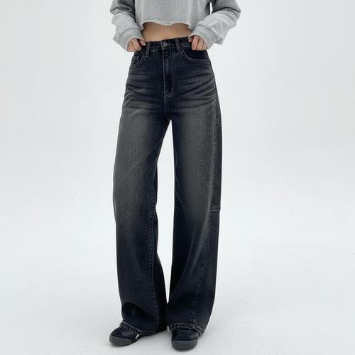 [신상오픈런]여성용 사계절 와이드 벌룬핏 블랙 청바지 (45804852)