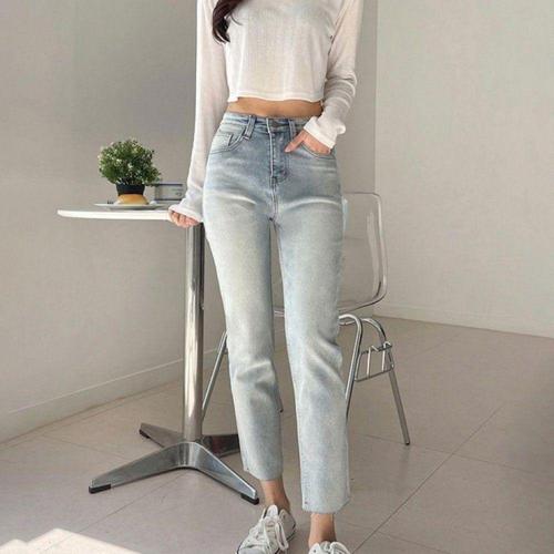[오너클랜]인기상품 여성용 스판 데님 일자핏 연청 바지 사계절용 청바지 [WFLHI91_260207]