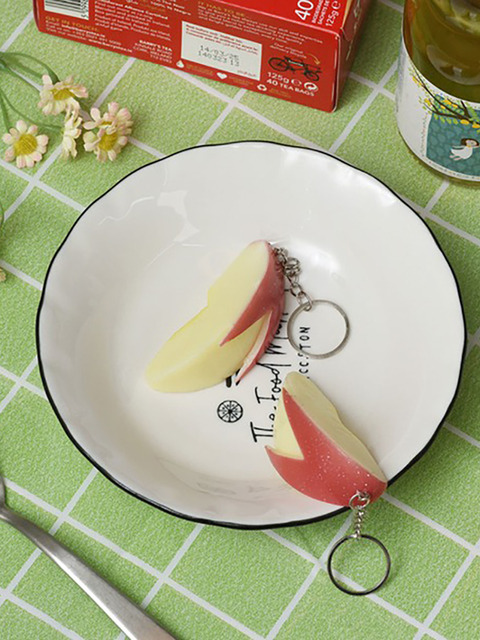 TEMU 2pcs 세라믹 스타 키체인 장식, 귀여운 물고기 및 사과 디자인, 내구성이 뛰어난 폴리에스테르, 휴대폰 케이스, 가방 및 선물에 이상적인 귀여운 키체인 액세서리, 2pcs 세라믹 스타 키체인 장식