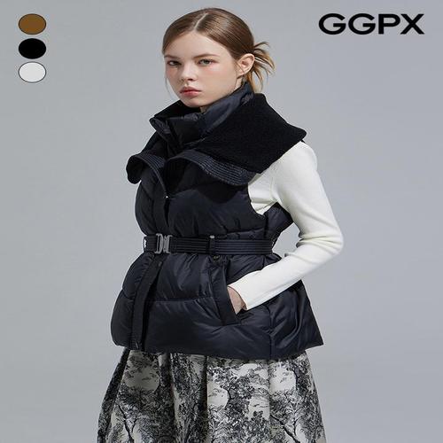 [GGPX]사선 퀼팅 빅 카라 벨트 패딩 베스트 (GPAVT013F)