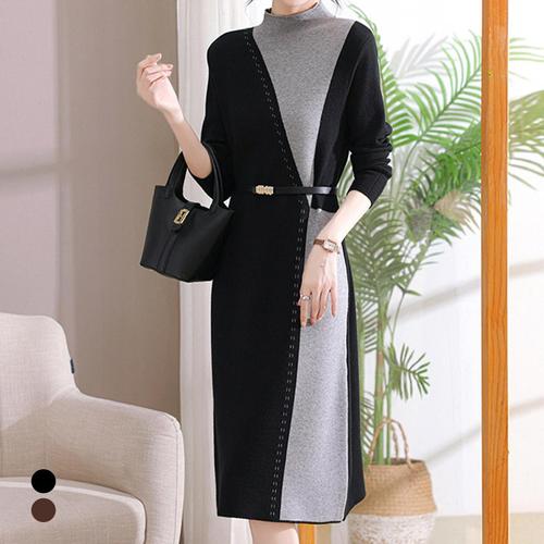 [화세]화세 사선배색니트원피스+벨트SET_HL5WOP003C