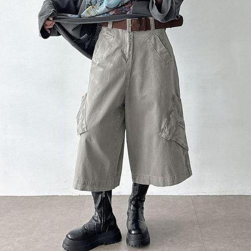 [신상오픈런]여성 사선 카고 벨트 아메카지 스타일 와이드 버뮤다 팬츠