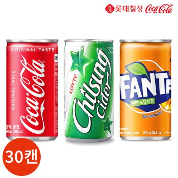 콜라 칠성사이다 환타 오렌지 190ml 3종 30캔 세트