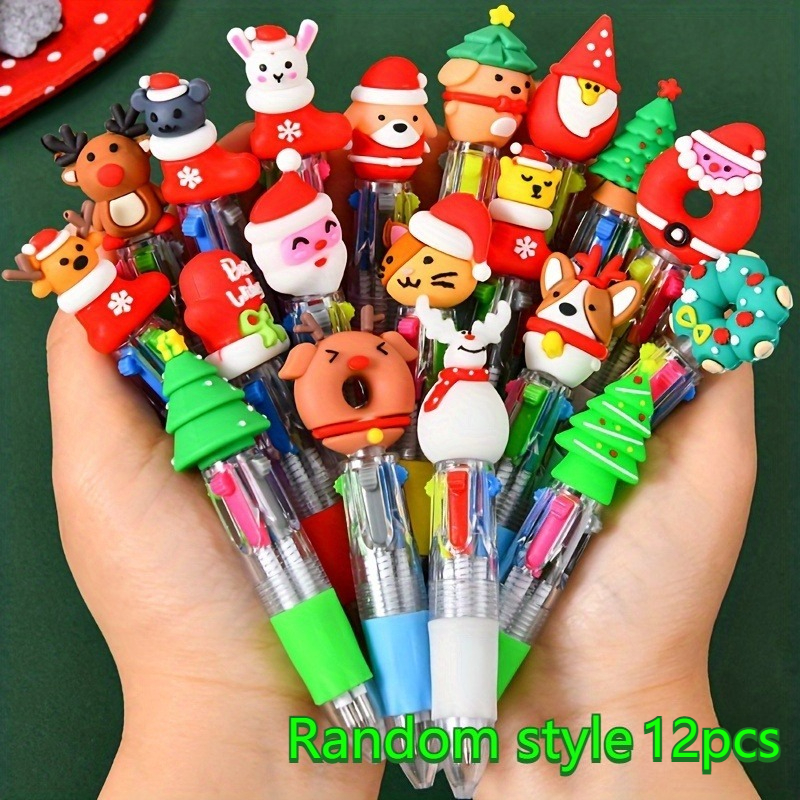 TEMU 4/8/12개 미니 크리스마스 4색 클릭펜 지우개 팁 포함 - 4색 전환 젤펜 (빨강/초록/파랑/분홍) 학용품, 생일 파티 선물, 휴일 선물 - 귀여운 산타, 순록, 눈사람 디자인 볼펜