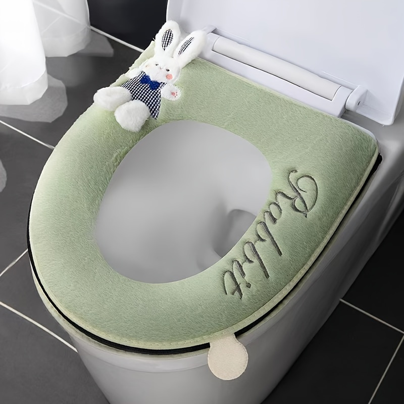 TEMU 카툰 토끼 자수 화장실 좌변기 커버와 플러시 따뜻함 편안함 - 재사용 가능, 미리 붙여진 타원형 천 덮개 데칼과 지퍼가 있는 범용 핏. 부활절, 봄, 여름에 완벽|변기커버