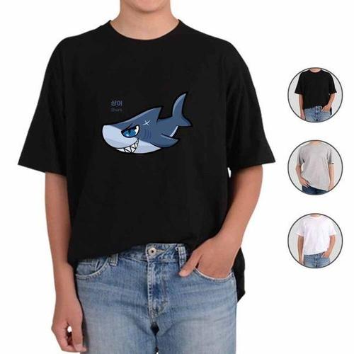 [셀러허브_여성트랜드패션]오트밀 남녀공용 반팔티 상어 해수어