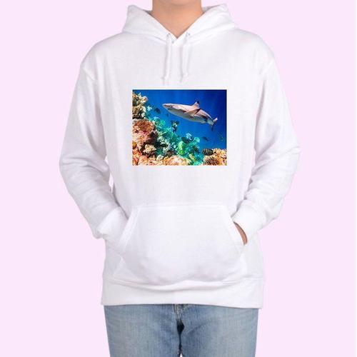 [에이치플러스몰]후드티 프린팅티셔츠 상어 해양생물