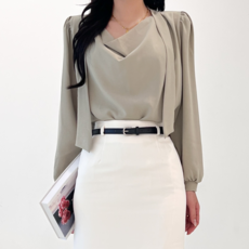 Titikong 여성 타이 브이넥 블라우스 새틴 남방 오피스룩 빅사이즈 셔츠 링클프리