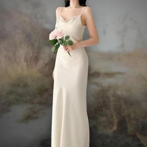 새틴 럭셔리 여신 기념일 골드 원피스 랩 우아 샴페인 실크 롱 분위기 파티