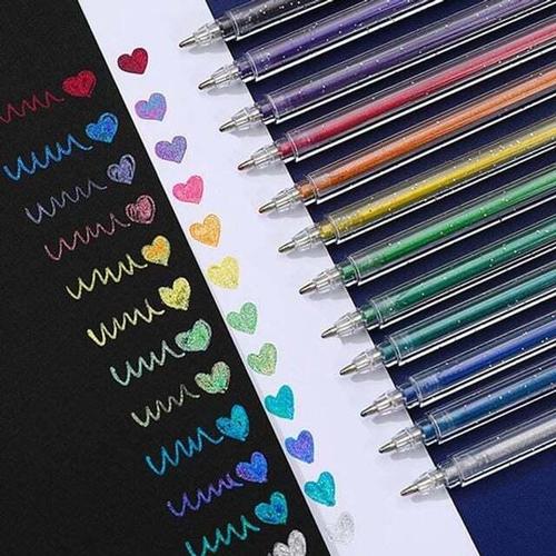 [셀럽하우스]반짝이볼펜 QOES5539 세트 메탈 12색 글리터 컬러볼펜 다이어리
