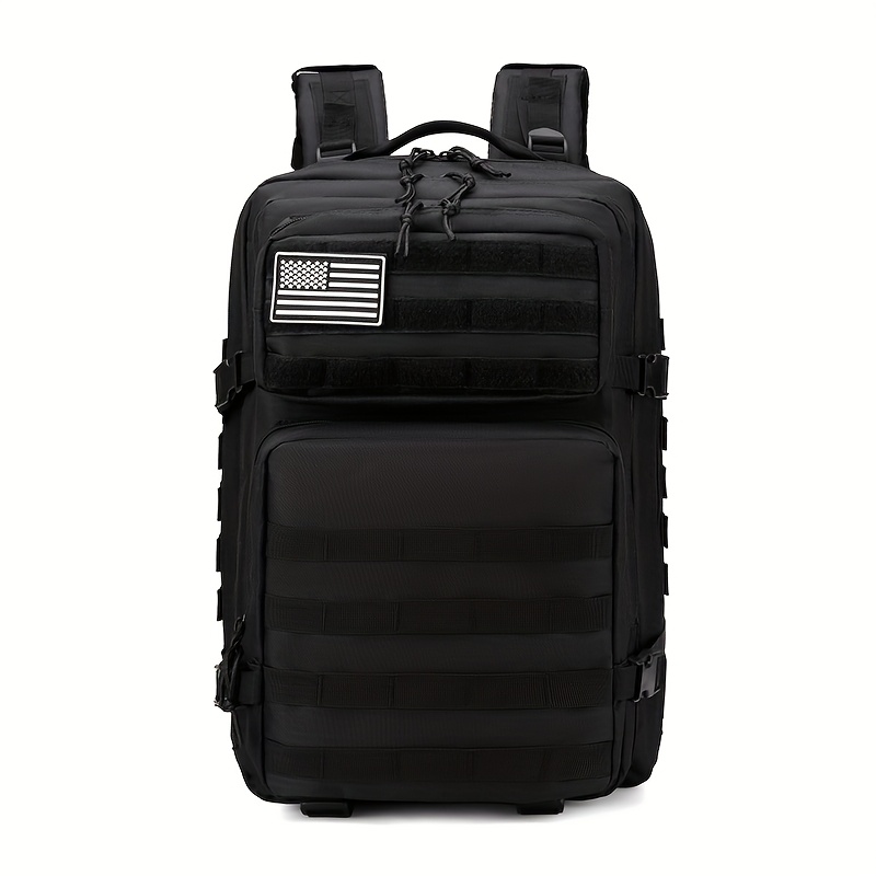 TEMU 남성용 45L 3일 야외 백팩, 하이킹, 캠핑, 등반에 적합, 스포츠 몰리 시스템 및 미국 국기 디자인 특징.