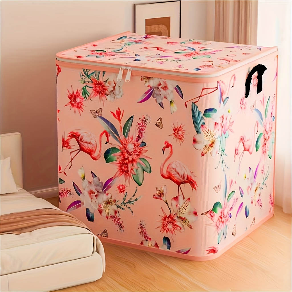 TEMU 대용량 휴대용 이사 및 계절 의류 보관함 - 꽃과 새 패턴 디자인, 홈 옷장 정리 및 야외 여행 공간 절약에 적합, 노동절 또는 추수감사절 완벽한 선물. 클래식 스타일, 내구성 있는 소재, 튼튼한 구조, 다기능 보관함, 침대 밑 보관 가능