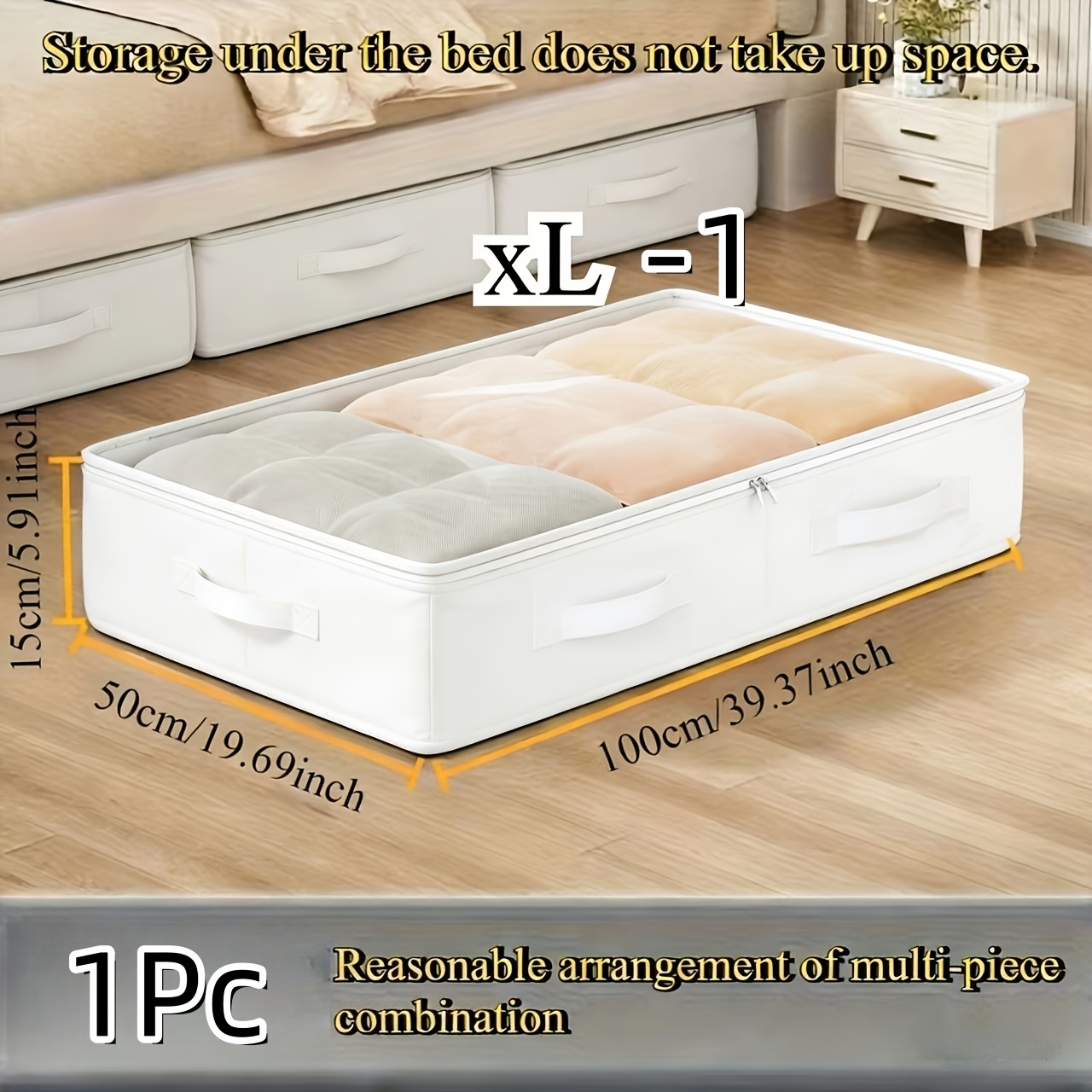 TEMU 1개 대용량 옷과 이불 정리용 보관백, 초대형 보관 주머니, 침실 정리백, 옷장 정리함, 학생 기숙사 정리함, 학기 시작 시 이사용 짐 포장백, 침대 밑 보관용