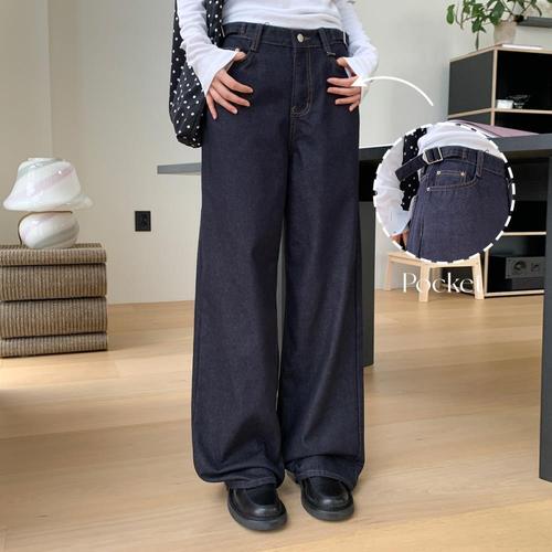 [옷자락]여성 논페이드 생지 와이드 데님진