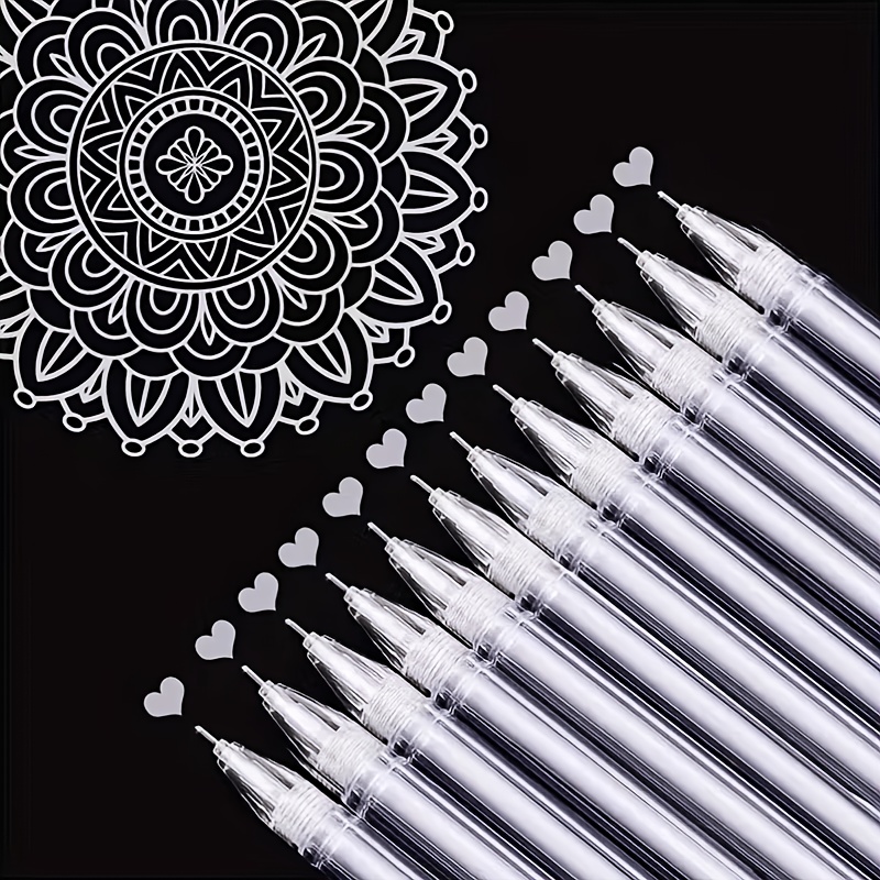 TEMU 화이트 및 골든 실버리 12개입 젤펜 세트, 0.5mm 초극세심, 검은색 종이용 드로잉 및 스케치에 이상적