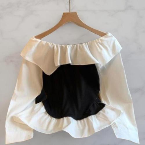 [다잇템_패션]여성 러블리 벌룬 프릴 볼드숄더 블라우스