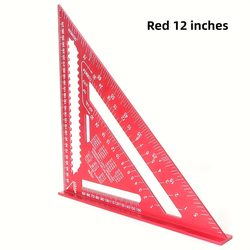 TEMU 7/12인치 정밀 알루미늄 목수 사각 측정기 - 톱니 모양 가장자리가 있는 빨간색 삼각형 자, 정확한 측정, 주택 개조 및 디자인 프로젝트에 적합, 목공에 이상적인 도구, 효율적인 직사각형 연결 측정, 스마트 메탈 자, 적합하게 설계된 자