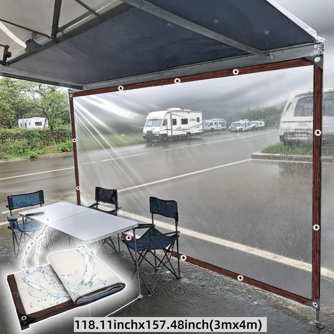 TEMU 두꺼운 투명 방수 천, 신축성 있는 정원용 비방지 폴리에틸렌 천, 바람과 눈에 강한 발코니 및 야외 캠핑 쉼터용 다목적 차광천|텐트