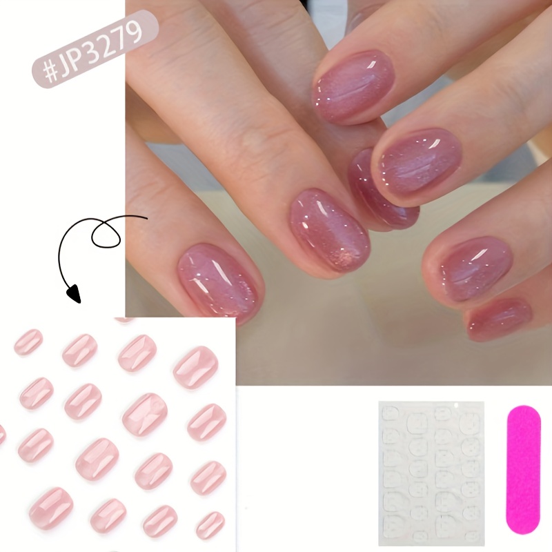 TEMU 24개 신상 젤리 누드 네일 웨어 숏 미니 캣 아이 네일 여성용 단색 네일, 카테고리: 프레스 인조 네일