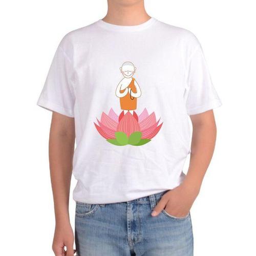 [에이치플러스몰]반팔 라운드티 불교 스님 연꽃 절 석가모니