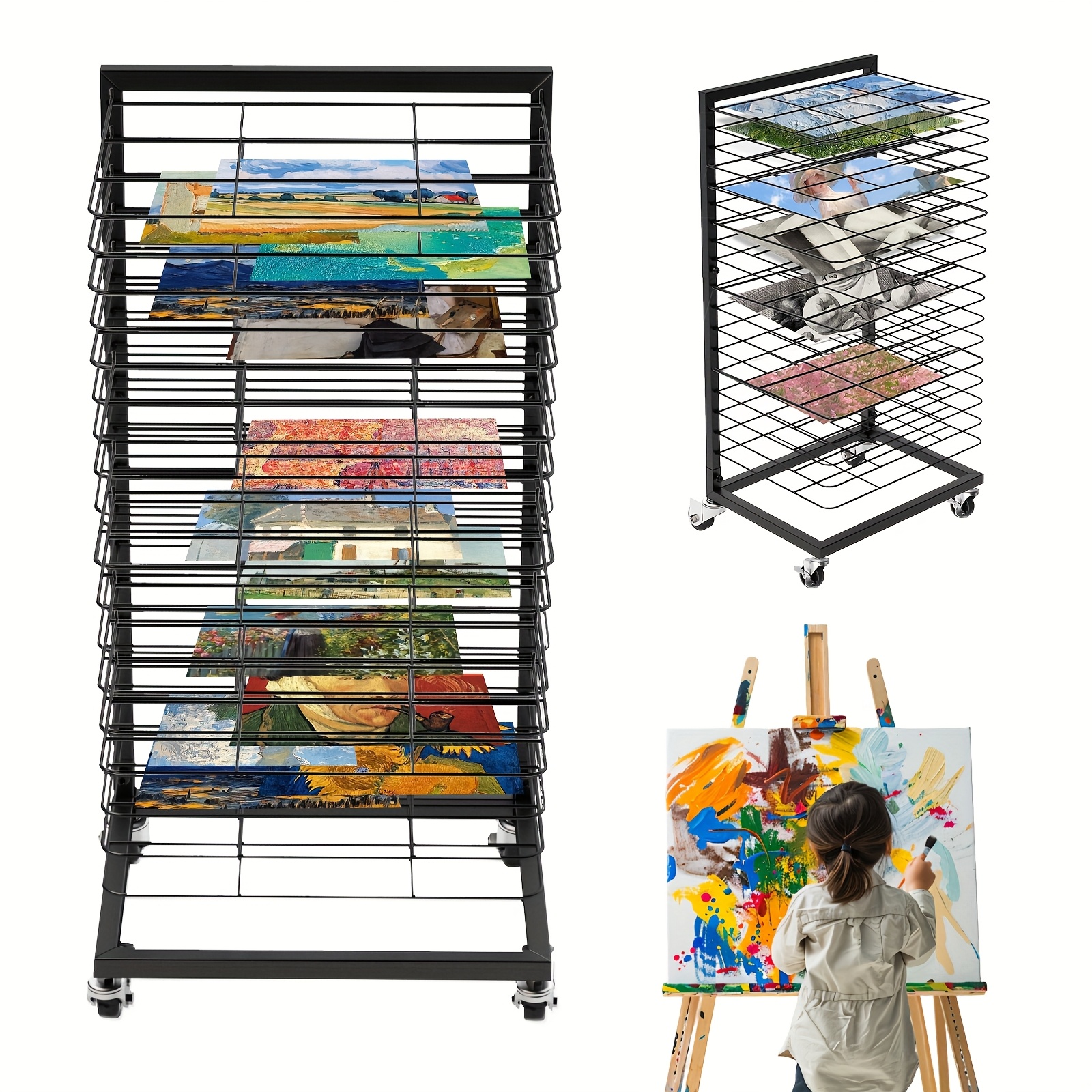 TEMU 18단 미술품 건조대 - 미술 스튜디오, 교실, 유치원용 넓은 이동식 금속 수납장 - 예술가, 교사, 학생을 위한 내구성 있는 휴대용 디자인