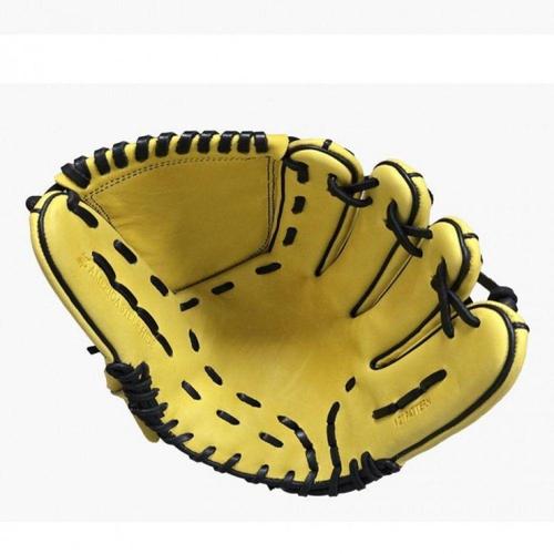 TEMU 1개 더블 레이어 인조 가죽 베이스볼 & 소프트볼 글러브 - 강화 스티칭, 청소년 및 성인용 에르고노믹 디자인, 블랙 & 옐로우 액센트 - 훈련 및 게임용 내구성 스포츠 장비, 야구 글러브, 슬림한 스포츠 액세서리, 튼튼한 구조, 청소년용