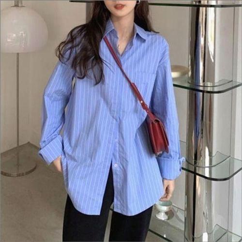 여자 심플 세로 스트라이프 오피스룩 루즈핏 셔츠