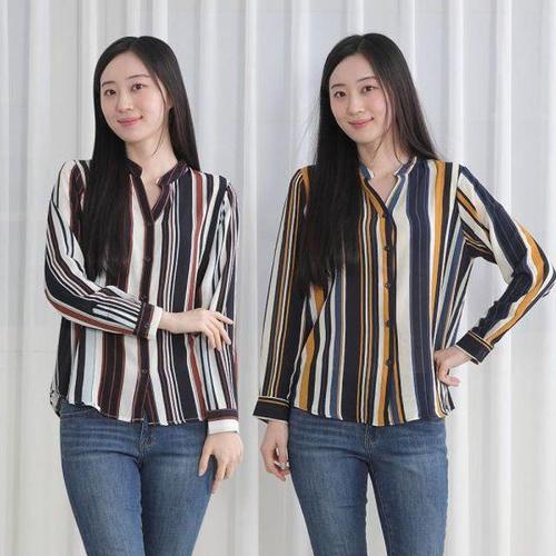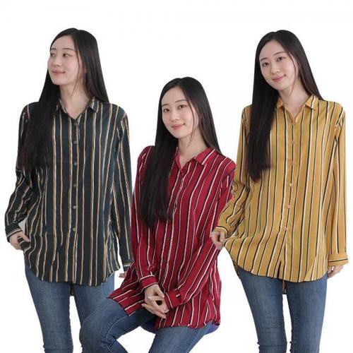 [에이치플러스몰]가을 오피스룩 긴팔 봄 2색 세로 남방 셔츠 스트라이프 여자