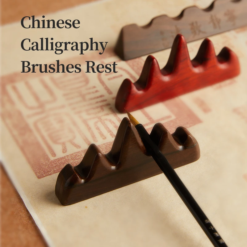 프리미엄 호두나무 중국 서예 붓 받침대, 손으로 조각한 산 모양 5 슬롯 붓 홀더, 책상 장식 필기구