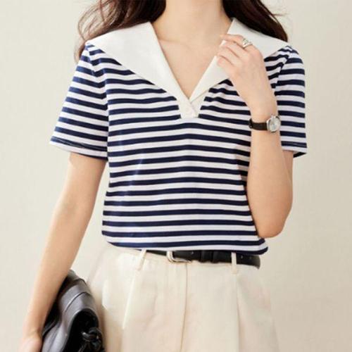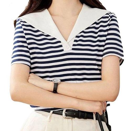 [신상오픈런]여성 스트라이프 세일러 카라 반팔 티셔츠