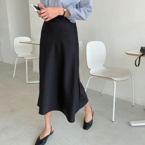 [신상오픈런]여자 클래식 뒷밴딩 새틴 머메이드 롱 스커트