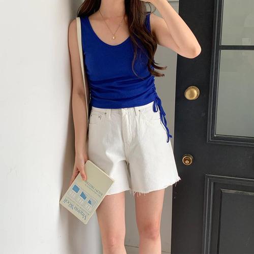 [다잇템]여자 골지나시 탱크 옆셔링 코디 날라리 티셔츠