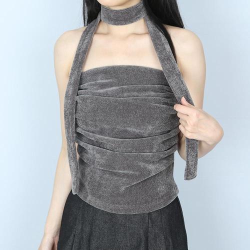 옷자락 / 여성 무지 컬러 면혼방 셔링 민소매 스트랩 티