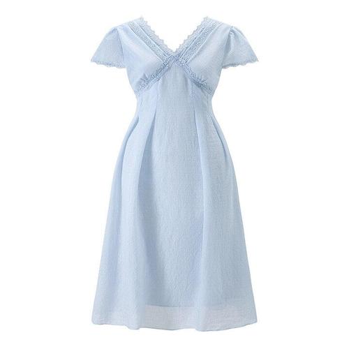 넓은카라 레이스 리본 셔링 귀여운 롱원피스 원피스 잠옷 WFMU2AM