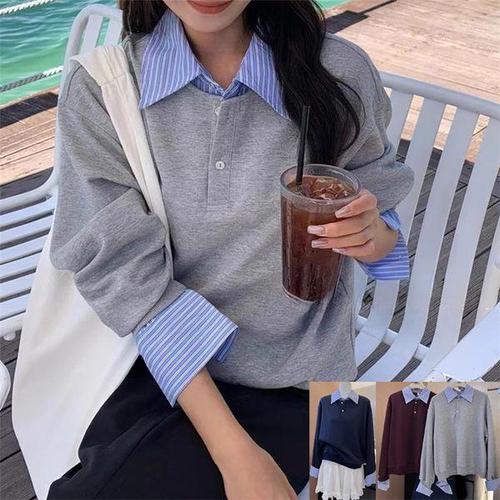 맨투맨 니트 후드티 가디건 레이어드 패션 소품 페이크 셔츠 카라 세련된 세로줄 패턴