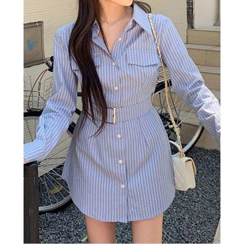 44사이즈 스트라이프 벨트원피스 셔츠원피스 롱 WFLMUTP