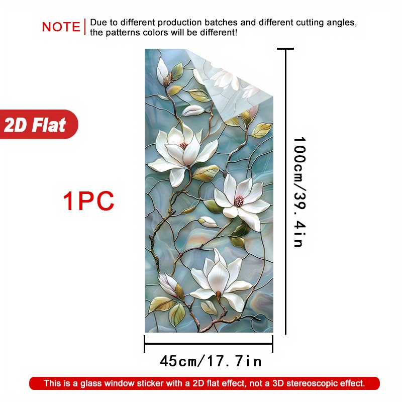TEMU 2D 평면, 1롤 무광 창문 필름 - 홈/오피스용 정전기 부착 유리 커버, 매그놀리아 무늬, 설치/제거 가능, PVC 필름, 문, 창문, 유리 패널용