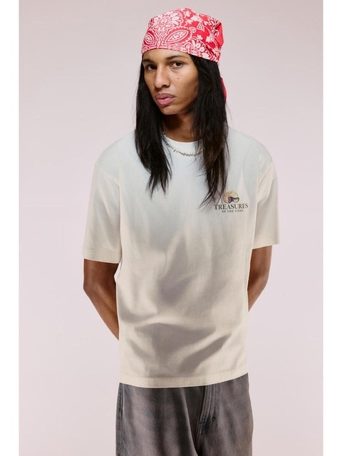 [에이치엔엠] 루즈핏 프린트 티셔츠 화이트/소라 껍데기 1034065182