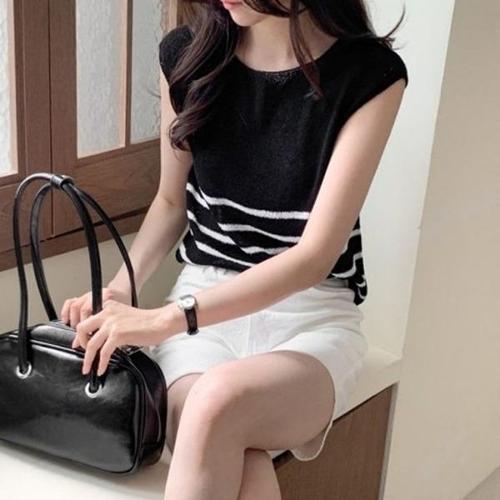 [에이치플러스몰]가로줄 나시신축성 이지 소매없음