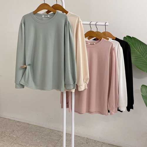 해리드 셔링 퍼프 소매 라운드 티셔츠(5color)