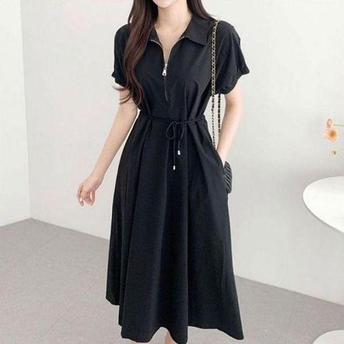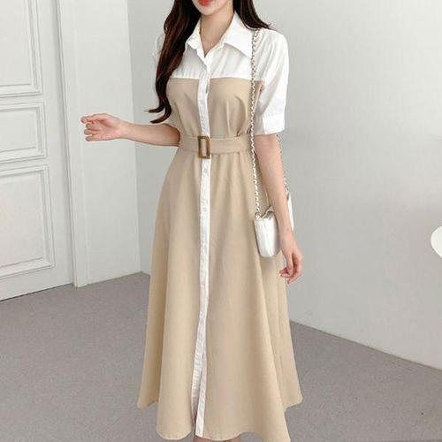 [에이치플러스몰]여성 데이트 정장 롱원피스 1P 퍼프 소매 벨트 치마