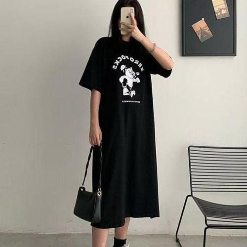 [에이치플러스몰]쿨 홈웨어 외출 데일리 앞뒤레터링 트임 반팔원피스